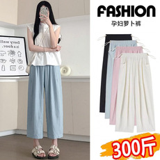 新款松紧腰夏季阔腿裤女手抓纹大码宽松裤子薄款女裤妈妈九分裤子