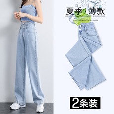 天丝牛仔裤女夏季新款小个子高腰薄款直筒裤超薄冰丝阔腿九分裤子