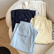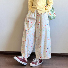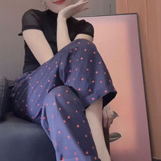 2025韩国气质治愈系波点夏季休闲直筒阔腿裤子女九分防晒运动裤女