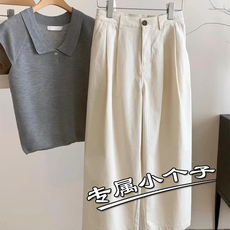 八分小个子高级米白色水洗棉直筒裤女夏季高腰九分超遮胯阔腿裤xs