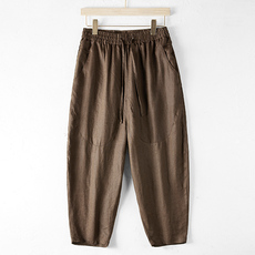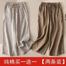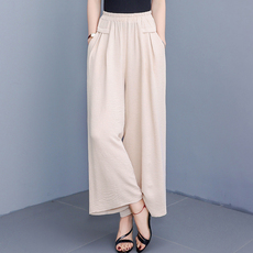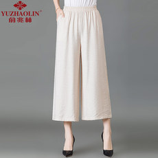 2025夏季松紧腰休闲款仿麻料九分裤阔腿裤显瘦百搭亚麻裙裤透气