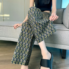 花裤子女夏季薄款宽松九分凉凉裤高腰直筒显瘦休闲潮流沙滩阔腿裤