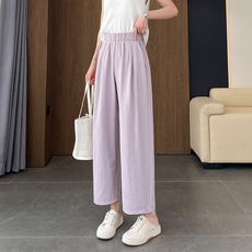 夏季冰丝薄款九分阔腿裤女初中高中学生高腰速干裤八分休闲直筒裤