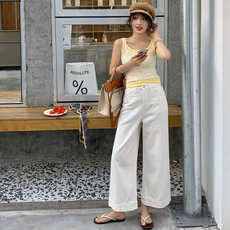 小C家 白色简约抽绳高腰休闲九分裤女夏季新款流行宽松百搭阔腿裤