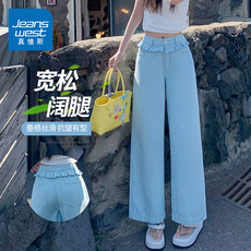 浅色高腰直筒牛仔裤女夏季2024新款九分小个子宽松阔腿垂感拖地裤