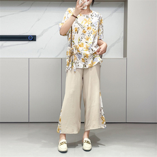 印花休闲裤女夏季薄款大码胖mm显瘦九分裤高腰百搭宽松阔腿小花裤