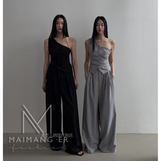 现~韩国代购女装2025春优雅不对称捏褶瘦款马甲+高腰阔腿裤潮套装