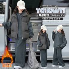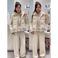 奥莱折扣店专柜女装清仓时尚加厚套装大码女卫衣马甲阔腿裤三件套
