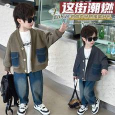官方正品女童皮扣毛衣套装2025年秋冬新款翻领针织上衣阔腿裤两件