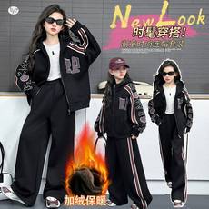 官方正品女童加绒运动套装2025年冬季新款立领刺绣卫衣阔腿裤两件