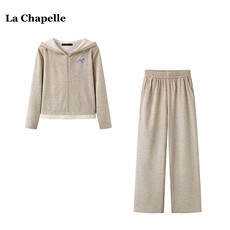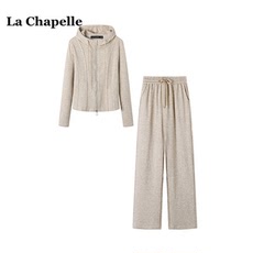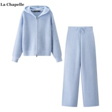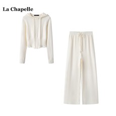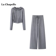 拉夏贝尔/La Chapelle休闲连帽针织开衫高腰阔腿裤女秋冬俩件套装