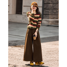 奥莱折扣店专柜女装清仓小香风气质针织衫毛衣灯芯绒阔腿裤套装