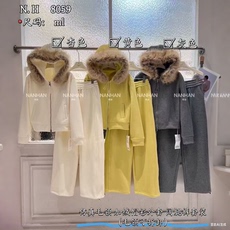 NANHAN正品银狐绒三件套夹棉马甲+长袖连帽卫衣外套+阔腿裤套装冬