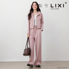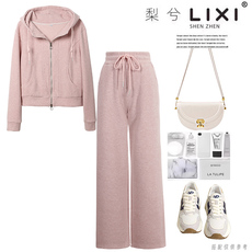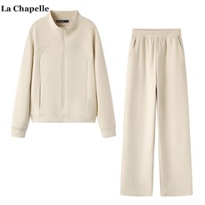 拉夏贝尔/La Chapelle秋季休闲立领卫衣开衫高腰阔腿裤运动套装女