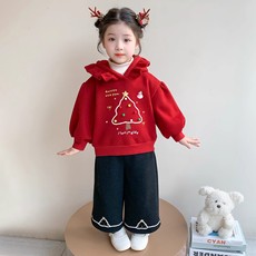 官方正品加绒女童套装2025年秋冬新款连帽爱心外套阔腿裤两件套中