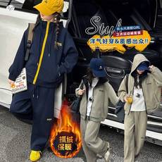 官方正品女童加绒卫衣套装2025秋冬新款休闲连帽拉链衫阔腿裤两件