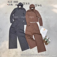 NANHAN正品两件套女长袖短款连帽外套开衫T+直筒阔腿长裤运动套装