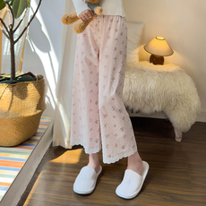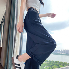 莱赛尔天丝九分休闲裤女夏季薄款小个子八分蕾丝花边直筒阔腿裤子