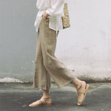 【布愫】夏季薄款花边文艺宽松纯亚麻休闲裤女九分大版阔腿棉麻裤