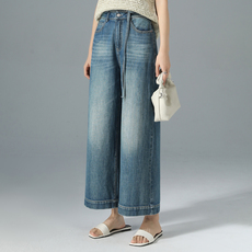 高腰薄款九分裤女夏季2025新款窄版阔腿裤小个子八分裤超薄牛仔裤