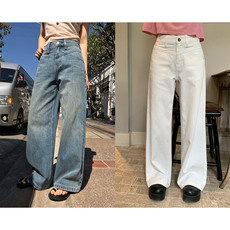 一三良品小个子复古蓝色白色显高直筒裤拖地阔腿裤牛仔裤裤子春夏