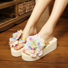 2025新款花朵拖鞋女夏季外穿人字拖韩版防滑海边沙滩厚底高跟甜美