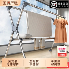 室外防风落地晾衣架别墅庭院家用伸缩阳台晒被子神器户外折叠衣架