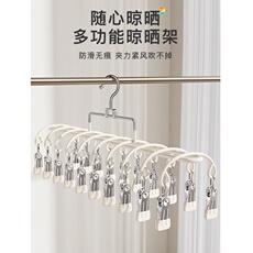 袜子晾晒架不锈钢晾衣架阳台家用带多夹子衣架多功能晒内衣夹神器