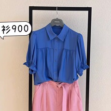 阿玛施女装商场同款温柔系圆领泡泡袖衬衫宽松减龄短袖上衣130143