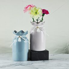 插百合花瓶荷叶边白色蓝色陶瓷摆件创意干花水培水养花器客厅插花