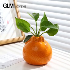 创意仿真橘子水培花瓶陶瓷插花小瓶高级感客厅前台办公室桌面摆件