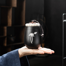 寸瓷黑陶茶叶罐陶瓷储存茶罐家用防潮普洱收纳家用包装密封罐茶盒