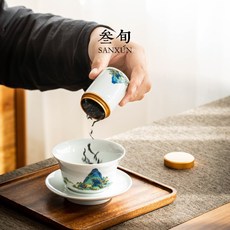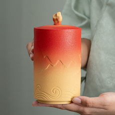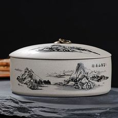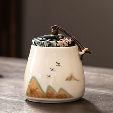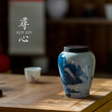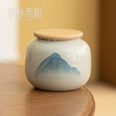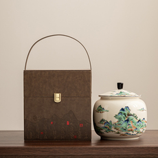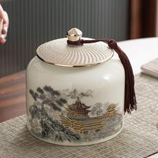 速发草木灰手绘浮雕山水茶叶罐釉下彩陶瓷密封陶瓷储茶罐防潮家用