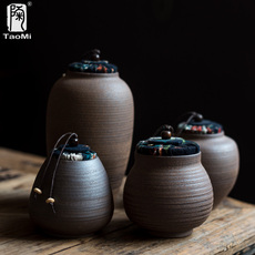 粗陶茶叶罐密封罐储存罐茶叶包装盒家用日式复古陶瓷普洱茶存茶罐