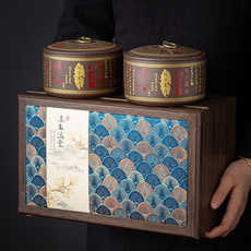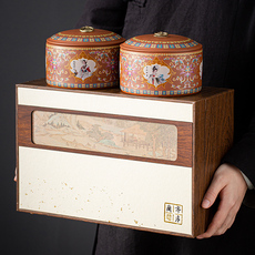青花康熙山水黑檀木盖密封罐手工陶泥存茶罐陶瓷家用茶叶罐包装盒