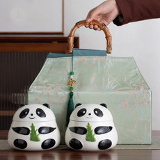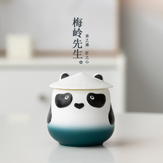 创意熊猫陶瓷茶叶罐家用小罐装储茶罐防潮密封罐子可定制装饰摆件