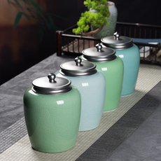 龙泉青瓷大号茶叶罐密封罐陶瓷冰裂纹家用高档精品手工茶罐存储罐