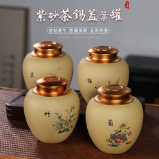 黄金段吸力罐一斤装手工宜兴紫砂茶叶罐陶瓷密封罐醒茶罐精致高端