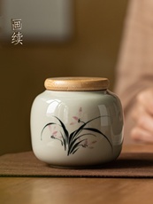 画续草木灰手绘兰花茶叶罐密封罐陶瓷存茶罐中式复古防潮家用小号
