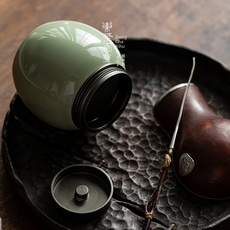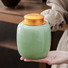中式青瓷茶叶罐精品高档大号家用陶瓷储存罐防潮密封存茶罐高级感