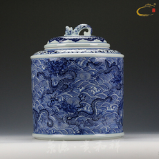 龙腾盛世描金饼罐陶瓷一茶叶罐饼茶罐
