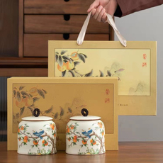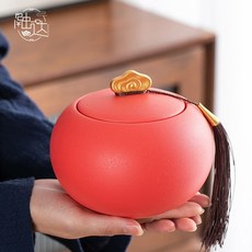 大吉大利茶罐陶瓷茶叶罐小号喜庆密封罐荔枝橘子茶包装礼盒储茶仓