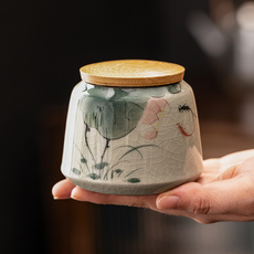 手绘哥窑陶瓷茶叶罐小号密封罐家用普洱茶储存罐中式茶叶盒存茶罐