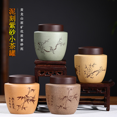 紫砂茶叶罐大码号陶瓷宜兴手工存茶泥刻绘七饼储茶罐醒茶米缸批发