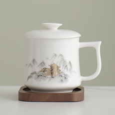 羊脂玉瓷茶杯办公室个人专用马克杯带盖陶瓷杯子家用水杯伴手礼品
