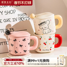 马克杯陶瓷杯子带盖勺女生新款家用高颜值情侣办公室高档咖啡水杯