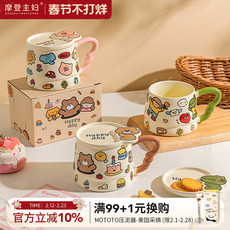 肆月动物创意可爱马克杯咖啡杯家用喝水陶瓷杯情侣水杯儿童杯子