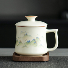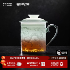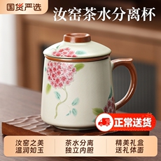 汝窑茶杯陶瓷带盖过滤茶水分离泡茶杯办公杯马克杯礼盒中秋节礼物