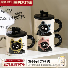 立体浮雕小猫马克杯伴手礼陶瓷好看的杯子家用喝水杯办公室咖啡杯