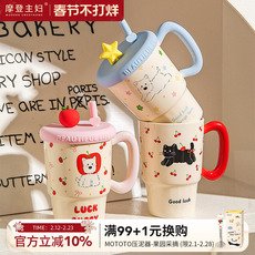 摩登主妇带盖马克杯办公室陶瓷吸管杯子家用喝水杯马年礼物咖啡杯